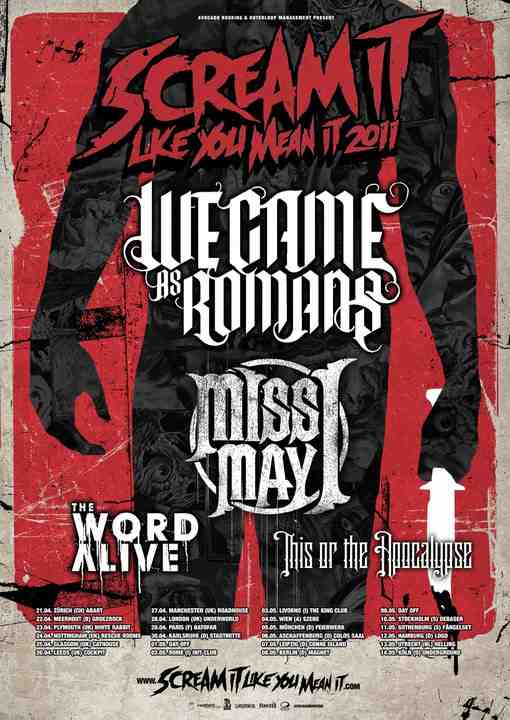 Tickets for all dates of the Scream It Like You Mean It Tour can be purchased through all venue ticketing outlets. We Came As Romans just finished touring with Parkway Drive, Comeback Kid, Bleeding Through, Emmure, and more, in Europe on the Imperial Never Say Die Tour.