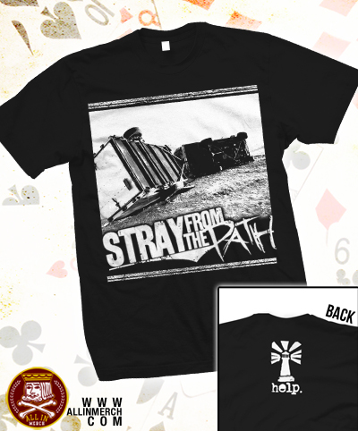 As you might have heard, the guys in Stray From The Path were involved in a car accident last Friday. They’re all oke, but their trailer is totally wrecked and some of their equipment broken. Together with All In Merchandise and 518 Prints, the band made a benefit T-shirt. Go support them and get one here.