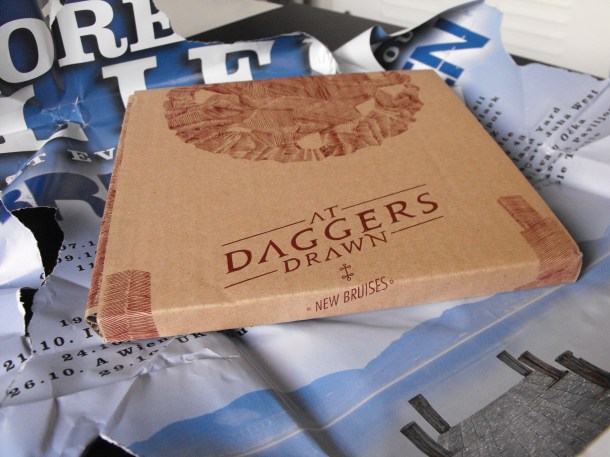 Two weeks ago we got a nice surprise in our mailbox: At Daggers Drawn‘s new EP New Bruises. The well-designed and presented box contained a black vinyl disc that blew us away after putting it in the CD player. New Bruises contains five tracks of raw punk hardcore. They are melodic yet heavy songs that contain the old school in-your-face mentality; though sound innovative in its own way. Pick it up and judge for yourself.