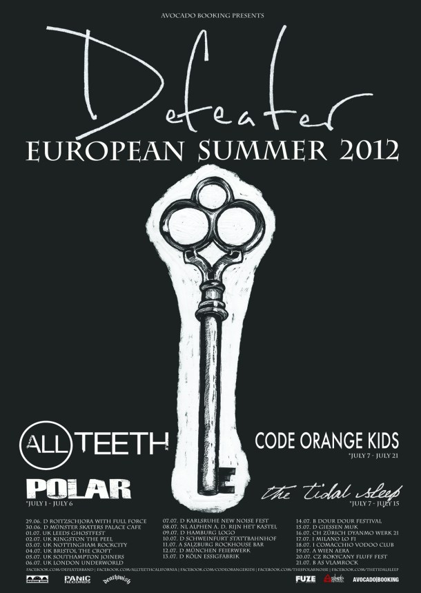 Defeater have announced a three week-long tour. They will be hitting several countries in mainland Europe as well as the UK. They guys will be accompanied by All Teeth, Code Orange Kids, Polar and The Tidal Sleep on selected dates.