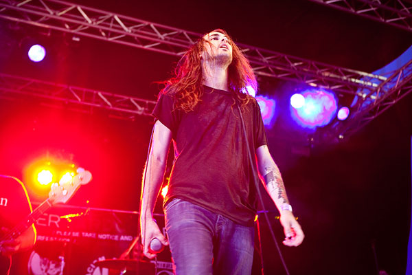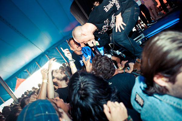 As always, The Chariot put on the most energetic show this weekend. Even though the recent departure of bassist Jonathan “KC Wolf” Kindler, who always put up an iconic performance, the band still put up a very strong show. Guitarists Brandon Henderson and Stephen Harrison have taken over the expressive guitar moves, and keep the energy level high together with drummer David Kennedy. Sing-a-longs were a big part of the show, especially when singer Josh Scogin got on a chair in the middle of the crowd; a lot of people got excited and reached out to the mic.