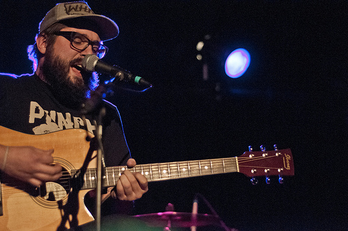 Into it. Over it. is Evan Thomas Weiss; nothing more and nothing less. Although this punky singer-songwriter played alone with his acoustic guitar on stage, the majority of the visitors were expecting a full band. Not that it mattered, because Weiss played a great set full of emotionally loaden folk songs. Interaction with the crowd was great too, being funny yet thankfull at the same time. A nice opener for this evening.