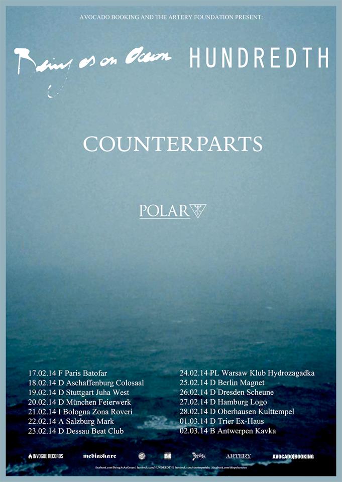 Hundredth and Being As An Ocean will be embarking on a European tour together, starting on February 17th. Counterparts and Polar will be supporting the bands through the 14-day tour, hitting six different countries. Stay tuned for more information.