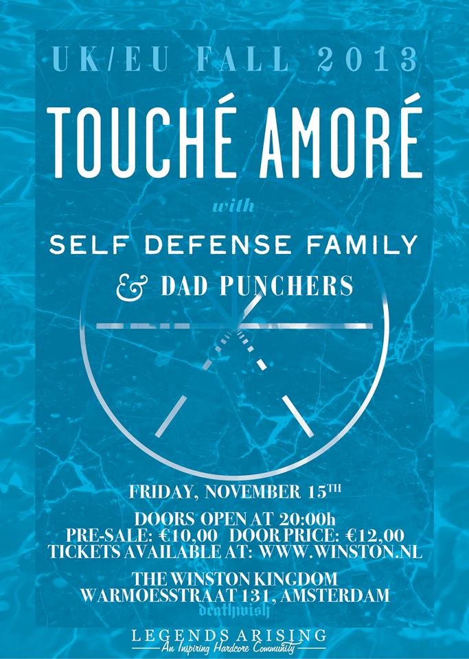 Together with Self Defense Family en Dad Punchers, Touche Amore will kick of their European tour a day earlier in Aarschot Belgium, and play in ten countries in almost one month.