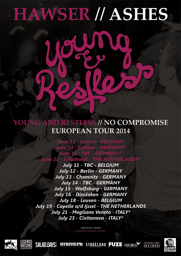 Tomorrow, HAWSER are kicking of their European tour with Santa Barbara heavyweights Downpresser. Starting in Belgium, the tour takes both bands through Germany, Austria, Luxembourg, United Kingdom, and The Netherlands in 17 days. In addition, the band announced a second European tour in support of Young and Restless. After four release shows, HAWSER will be joined by Belgian band Ashes for shows in Germany, Belgium, The Netherlands and Italy. All dates are listed below.