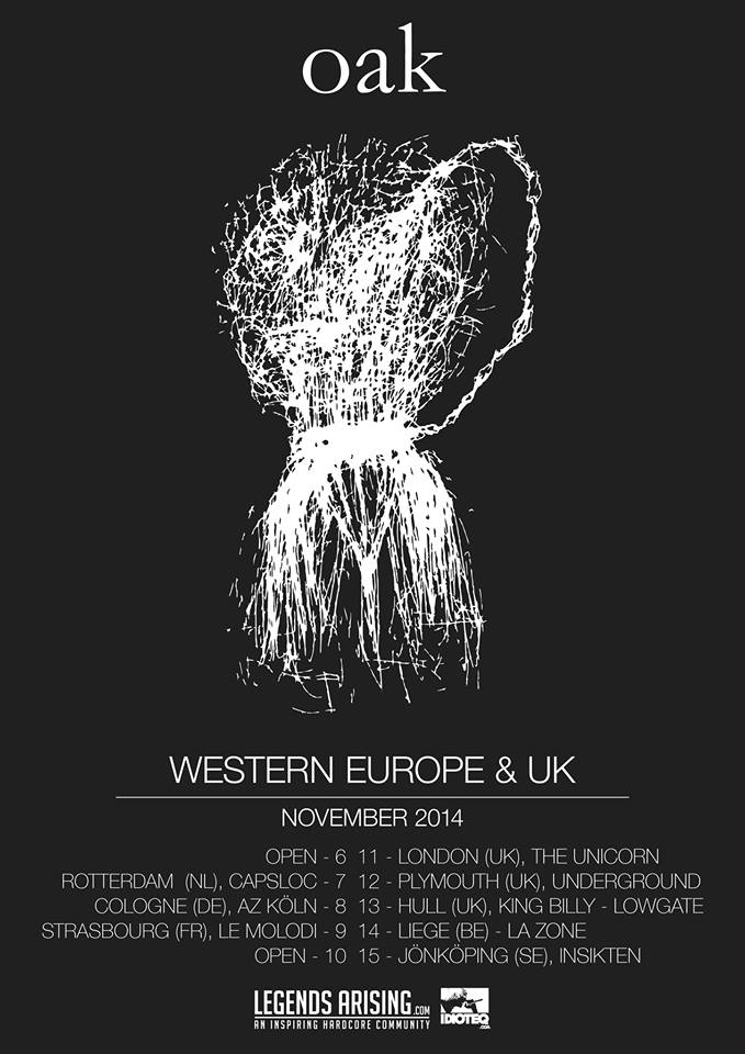 After a successful summer tour earlier this year, Jönköping, Sweden’s OAK have announced another run European dates in November. The trio will be doing 10 shows in The Netherlands, Germany, France, Belgium, Sweden and the United Kingdom. There are still two dates open, so get in touch with oakhardcore@gmail.com if you’re interested in booking them.