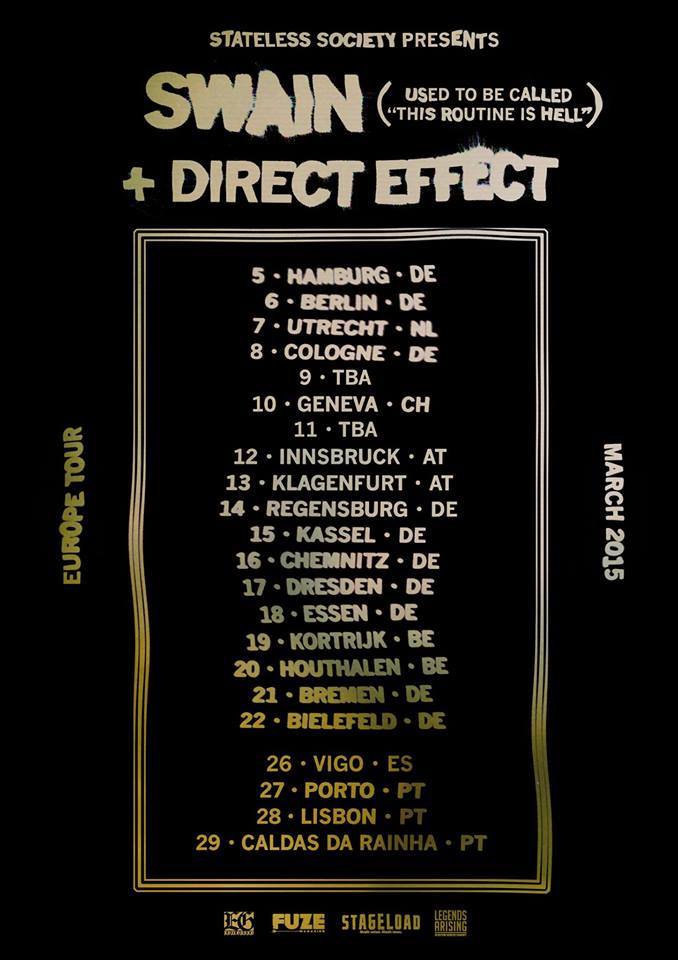 On March 5th, Swain will kick off their tour in Hamburg, Germany. Check out the full routing listed below. They’re still looking for shows on March 9 and 11 – reach out to joe@statelesssociety.com if you can help.