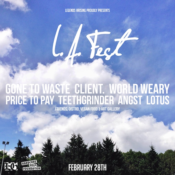 We are celebrating the release with a small party called L.A. Fest. We’ll be joined by our good friends in Gone to Waste, Client., World Weary, Teethgrinder, ANGST and LOTUS in a venue called ACU in Utrecht, the Netherlands where we’ll also be exhibiting art by Florian Schommer (the man behind the artwork of Client.’s new album Joy Is The Only Treat) and work by Anne Carolien Köhler and Max Horn. We also added Price To Pay to the line-up last-minute; this will be their LAST SHOW so come out, bang your head and get those feet running in the circle pit!
