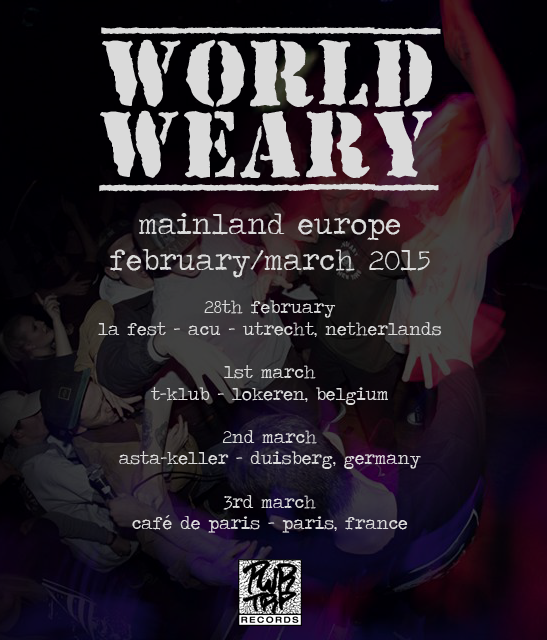 World Weary from London will be playing at L.A. Fest on February 28th and managed to organize complete weekender around it. The Netherlands, Belgium and Germany, roll out to catch these guys! Get to known them a little better and check this Introducing-feature we did on them a little while ago.