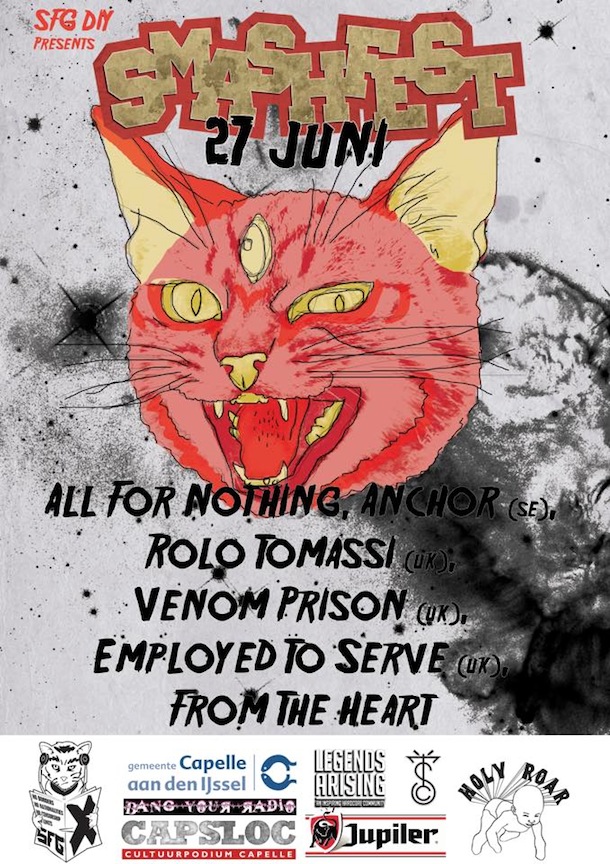 Smashfest announced the second bunch of names for its 2015 edition that’s taking place on June 27th at CAPSLOC in Capelle aan den IJssel (NL). Last month, Rolo Tomassi, Employed To Serve and From The Heart were confirmed. Today, Anchor, Venom Prison and All For Nothing were added to the bill. More bands will be added to the line-up soon, so stay tuned!